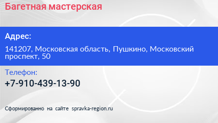 Багетная мастерская по адресу 141207, Московская область, Пушкино, Московский проспект, 50 в дальнейшем Организация, размещена в следующих категориях: