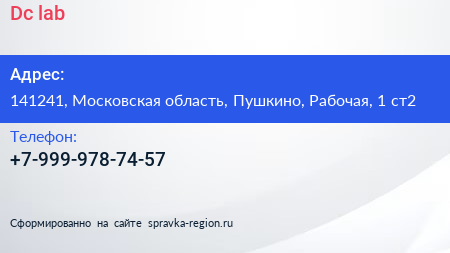 Dc lab по адресу 141241, Московская область, Пушкино, Рабочая, 1 ст2 в дальнейшем Организация, размещена в следующих категориях:
