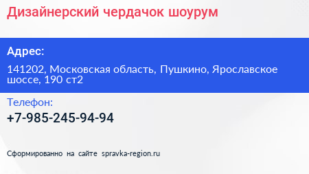 Дизайнерский чердачок, шоурум по адресу 141202, Московская область, Пушкино, Ярославское шоссе, 190 ст2 в дальнейшем Организация, размещена в следующих категориях: