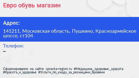 Евро обувь, магазин по адресу 141211, Московская область, Пушкино, Красноармейское шоссе, ст104 в дальнейшем Организация, размещена в следующих категориях: