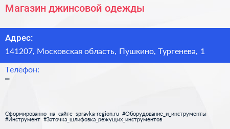 Магазин джинсовой одежды по адресу 141207, Московская область, Пушкино, Тургенева, 1 в дальнейшем Организация, размещена в следующих категориях:
