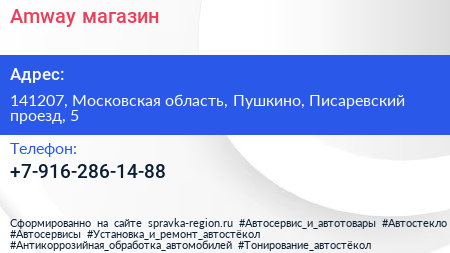 Amway, магазин по адресу 141207, Московская область, Пушкино, Писаревский проезд, 5 в дальнейшем Организация, размещена в следующих категориях: