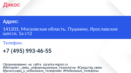 Дикос по адресу 141201, Московская область, Пушкино, Ярославское шоссе, 1а ст2 в дальнейшем Организация, размещена в следующих категориях: