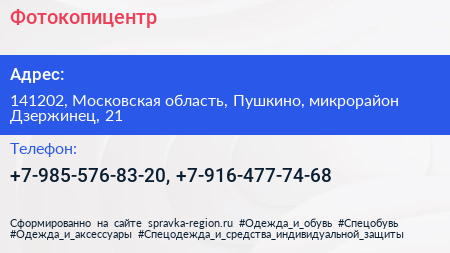 Фотокопицентр по адресу 141202, Московская область, Пушкино, микрорайон Дзержинец, 21 в дальнейшем Организация, размещена в следующих категориях: