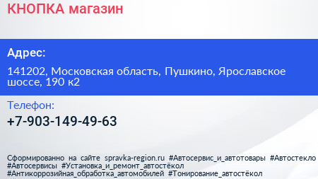 КНОПКА, магазин по адресу 141202, Московская область, Пушкино, Ярославское шоссе, 190 к2 в дальнейшем Организация, размещена в следующих категориях: