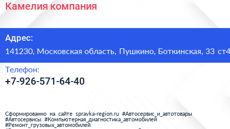 Камелия, компания по адресу 141230, Московская область, Пушкино, Боткинская, 33 ст4 в дальнейшем Организация, размещена в следующих категориях: