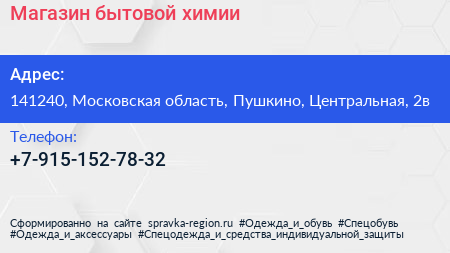 Магазин бытовой химии по адресу 141240, Московская область, Пушкино, Центральная, 2в в дальнейшем Организация, размещена в следующих категориях: