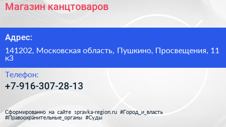 Магазин канцтоваров по адресу 141202, Московская область, Пушкино, Просвещения, 11 к3 в дальнейшем Организация, размещена в следующих категориях: