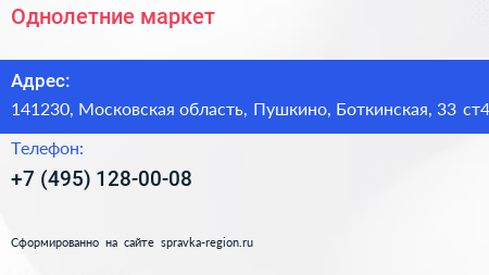 Однолетние, маркет по адресу 141230, Московская область, Пушкино, Боткинская, 33 ст4 в дальнейшем Организация, размещена в следующих категориях: