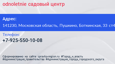 odnoletnie, садовый центр по адресу 141230, Московская область, Пушкино, Боткинская, 33 ст4 в дальнейшем Организация, размещена в следующих категориях: