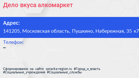 Дело вкуса, алкомаркет по адресу 141205, Московская область, Пушкино, Набережная, 35 к7 в дальнейшем Организация, размещена в следующих категориях:
