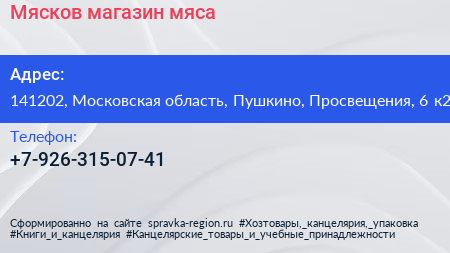 Мясков, магазин мяса по адресу 141202, Московская область, Пушкино, Просвещения, 6 к2 в дальнейшем Организация, размещена в следующих категориях: