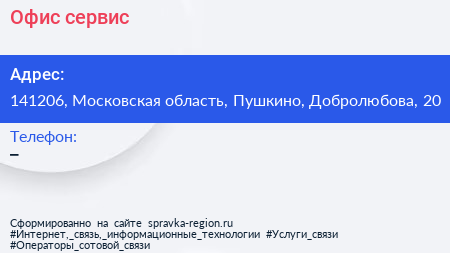 Офис-сервис по адресу 141206, Московская область, Пушкино, Добролюбова, 20 в дальнейшем Организация, размещена в следующих категориях: