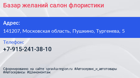 Базар желаний, салон флористики по адресу 141207, Московская область, Пушкино, Тургенева, 5 в дальнейшем Организация, размещена в следующих категориях: