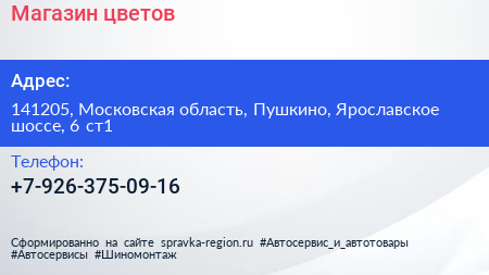 Магазин цветов по адресу 141205, Московская область, Пушкино, Ярославское шоссе, 6 ст1 в дальнейшем Организация, размещена в следующих категориях: