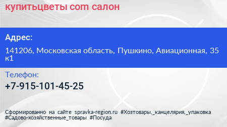 купитьцветы.com, салон по адресу 141206, Московская область, Пушкино, Авиационная, 35 к1 в дальнейшем Организация, размещена в следующих категориях: