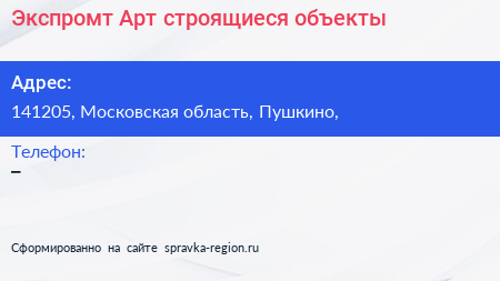 Экспромт-Арт, строящиеся объекты по адресу 141205, Московская область, Пушкино, в дальнейшем Организация, размещена в следующих категориях: