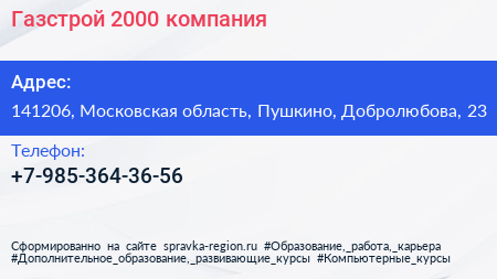 Газстрой-2000, компания по адресу 141206, Московская область, Пушкино, Добролюбова, 23 в дальнейшем Организация, размещена в следующих категориях: