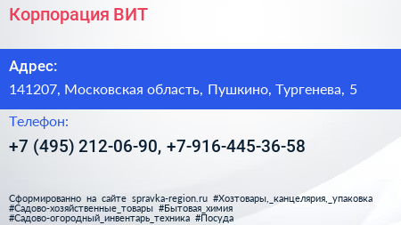 Корпорация ВИТ по адресу 141207, Московская область, Пушкино, Тургенева, 5 в дальнейшем Организация, размещена в следующих категориях: