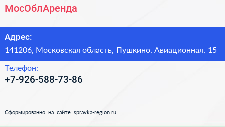 МосОблАренда по адресу 141206, Московская область, Пушкино, Авиационная, 15 в дальнейшем Организация, размещена в следующих категориях: