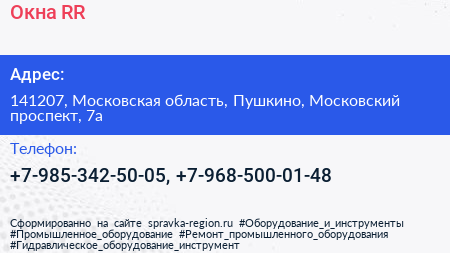 Окна RR по адресу 141207, Московская область, Пушкино, Московский проспект, 7а в дальнейшем Организация, размещена в следующих категориях:
