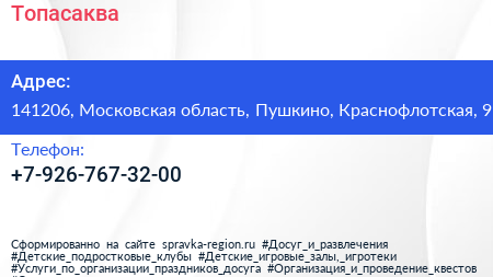 Топасаква по адресу 141206, Московская область, Пушкино, Краснофлотская, 9 в дальнейшем Организация, размещена в следующих категориях: