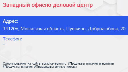 Западный, офисно-деловой центр по адресу 141206, Московская область, Пушкино, Добролюбова, 20 в дальнейшем Организация, размещена в следующих категориях: