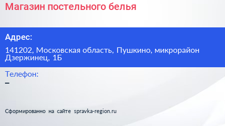 Магазин постельного белья по адресу 141202, Московская область, Пушкино, микрорайон Дзержинец, 1Б в дальнейшем Организация, размещена в следующих категориях: