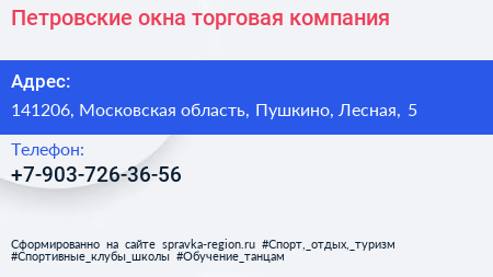 Петровские окна, торговая компания по адресу 141206, Московская область, Пушкино, Лесная, 5 в дальнейшем Организация, размещена в следующих категориях: