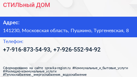 СТИЛЬный ДОМ по адресу 141230, Московская область, Пушкино, Тургеневская, 8 в дальнейшем Организация, размещена в следующих категориях: