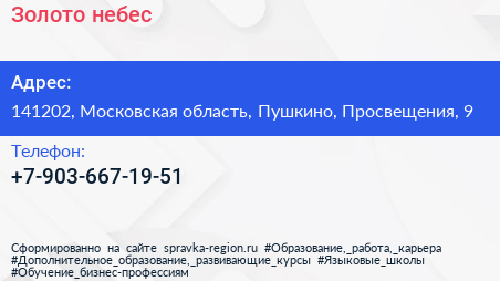 Золото небес по адресу 141202, Московская область, Пушкино, Просвещения, 9 в дальнейшем Организация, размещена в следующих категориях: