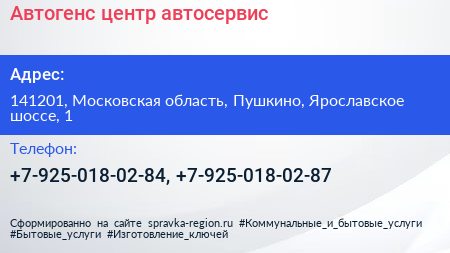 Автогенс центр, автосервис по адресу 141201, Московская область, Пушкино, Ярославское шоссе, 1 в дальнейшем Организация, размещена в следующих категориях: