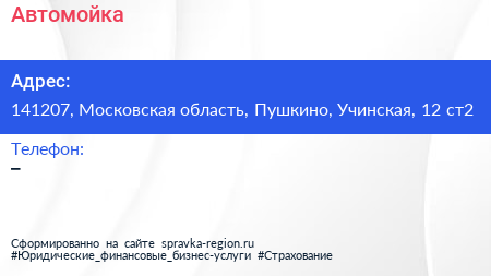 Автомойка по адресу 141207, Московская область, Пушкино, Учинская, 12 ст2 в дальнейшем Организация, размещена в следующих категориях: