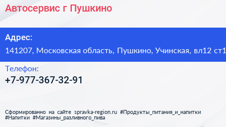 Автосервис, г. Пушкино по адресу 141207, Московская область, Пушкино, Учинская, вл12 ст1 в дальнейшем Организация, размещена в следующих категориях: