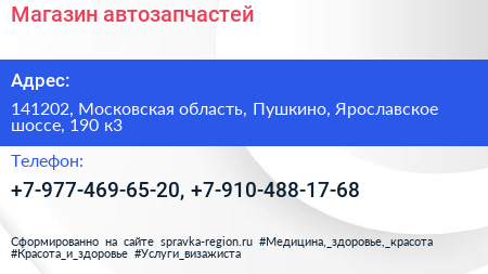 Магазин автозапчастей по адресу 141202, Московская область, Пушкино, Ярославское шоссе, 190 к3 в дальнейшем Организация, размещена в следующих категориях: