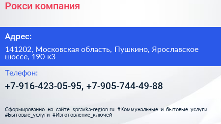 Рокси, компания по адресу 141202, Московская область, Пушкино, Ярославское шоссе, 190 к3 в дальнейшем Организация, размещена в следующих категориях: