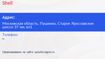 Shell по адресу Московская область, Пушкино, Старое Ярославское шоссе 37 км, вл1 в дальнейшем Организация, размещена в следующих категориях: