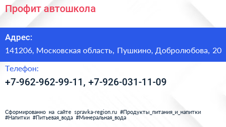 Профит, автошкола по адресу 141206, Московская область, Пушкино, Добролюбова, 20 в дальнейшем Организация, размещена в следующих категориях: