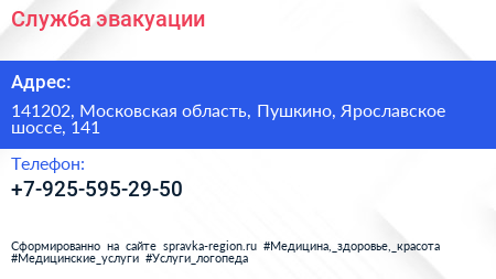 Служба эвакуации по адресу 141202, Московская область, Пушкино, Ярославское шоссе, 141 в дальнейшем Организация, размещена в следующих категориях: