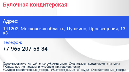Булочная-кондитерская по адресу 141202, Московская область, Пушкино, Просвещения, 13 к3 в дальнейшем Организация, размещена в следующих категориях: