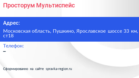 Просторум Мультиспейс по адресу Московская область, Пушкино, Ярославское шоссе 33 км, ст18 в дальнейшем Организация, размещена в следующих категориях: