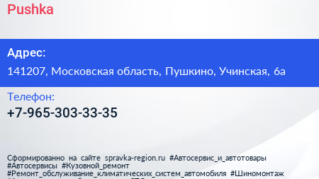 Pushka по адресу 141207, Московская область, Пушкино, Учинская, 6а в дальнейшем Организация, размещена в следующих категориях:
