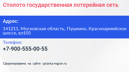 Столото, государственная лотерейная сеть по адресу 141211, Московская область, Пушкино, Красноармейское шоссе, вл105 в дальнейшем Организация, размещена в следующих категориях: