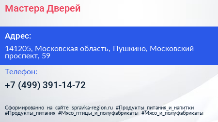 Мастера Дверей по адресу 141205, Московская область, Пушкино, Московский проспект, 59 в дальнейшем Организация, размещена в следующих категориях: