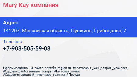 Mary Kay, компания по адресу 141207, Московская область, Пушкино, Грибоедова, 7 в дальнейшем Организация, размещена в следующих категориях: