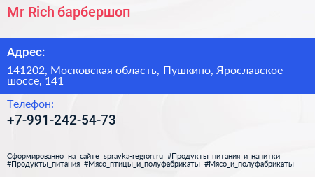 Mr. Rich, барбершоп по адресу 141202, Московская область, Пушкино, Ярославское шоссе, 141 в дальнейшем Организация, размещена в следующих категориях: