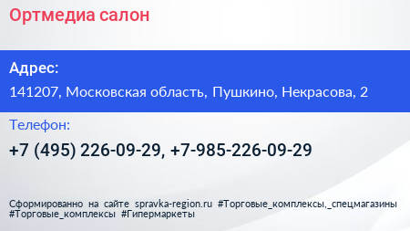 Ортмедиа, салон по адресу 141207, Московская область, Пушкино, Некрасова, 2 в дальнейшем Организация, размещена в следующих категориях: