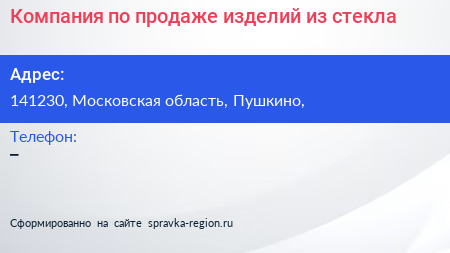 Компания по продаже изделий из стекла по адресу 141230, Московская область, Пушкино, в дальнейшем Организация, размещена в следующих категориях: