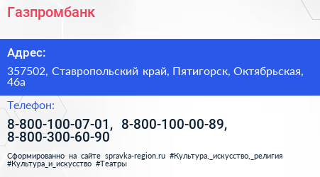 Газпромбанк по адресу 357502, Ставропольский край, Пятигорск, Октябрьская, 46а в дальнейшем Организация, размещена в следующих категориях: