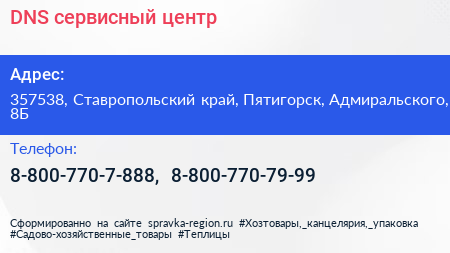 DNS, сервисный центр по адресу 357538, Ставропольский край, Пятигорск, Адмиральского, 8Б в дальнейшем Организация, размещена в следующих категориях: